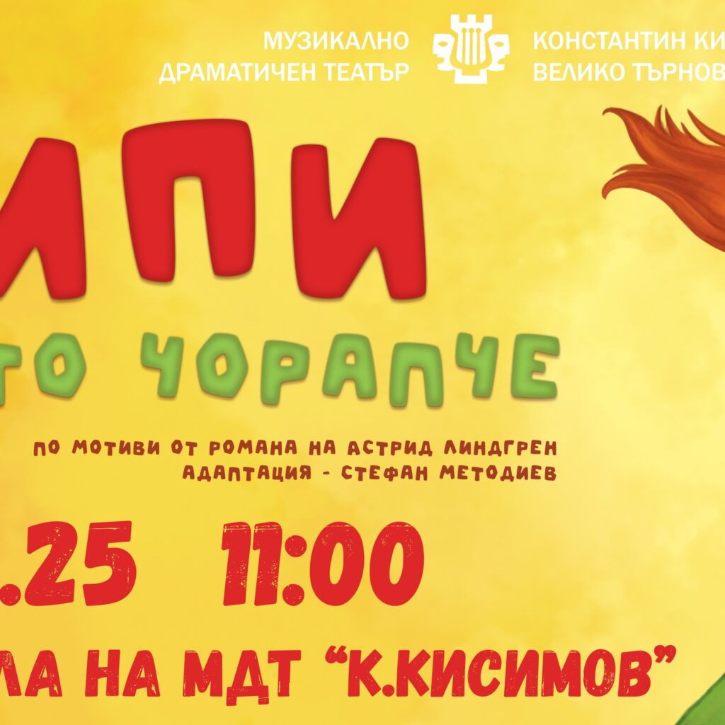 ноември 8, 2025 - ноември 8, 2025 Събития„Пипи дългото чорапче“ – спектакъл за деца на МДТ „К. Кисимов Прочетете още