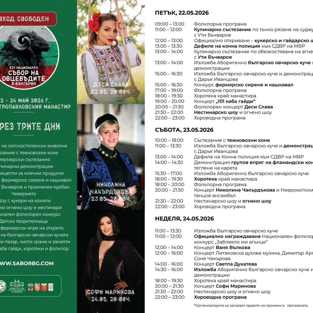 юни 13, 2026 - юни 14, 2026 СъбитияФестивалиНационален фолклорен фестивал „Насред мегдана в Арбанаси“ Прочетете още