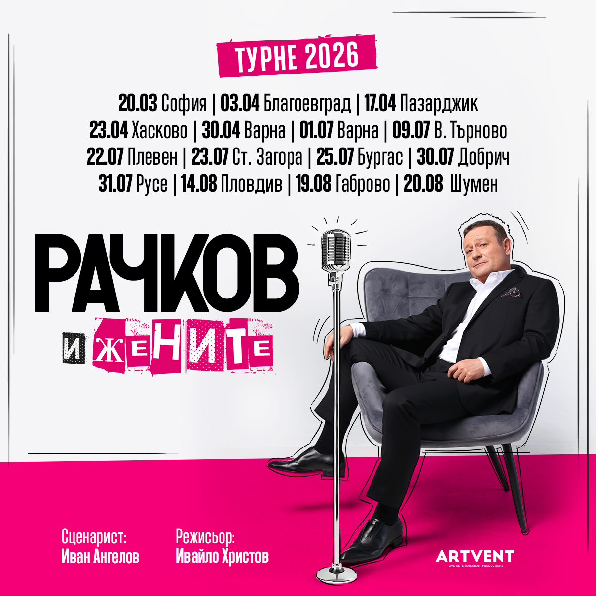 Това е спектакъл, който разказва истински истории за отношенията на Димитър Рачков с жените в неговия живот. Разбира се, украсени, преувеличени и със сменени имена на дамите… е не на всички. 😁
